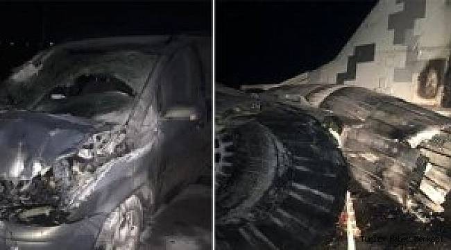 İsmi açıklanmayan subayın aracının çarpması sonucu uçağın motorunda çıkan yangında subayın aracı da alev alev yandı.