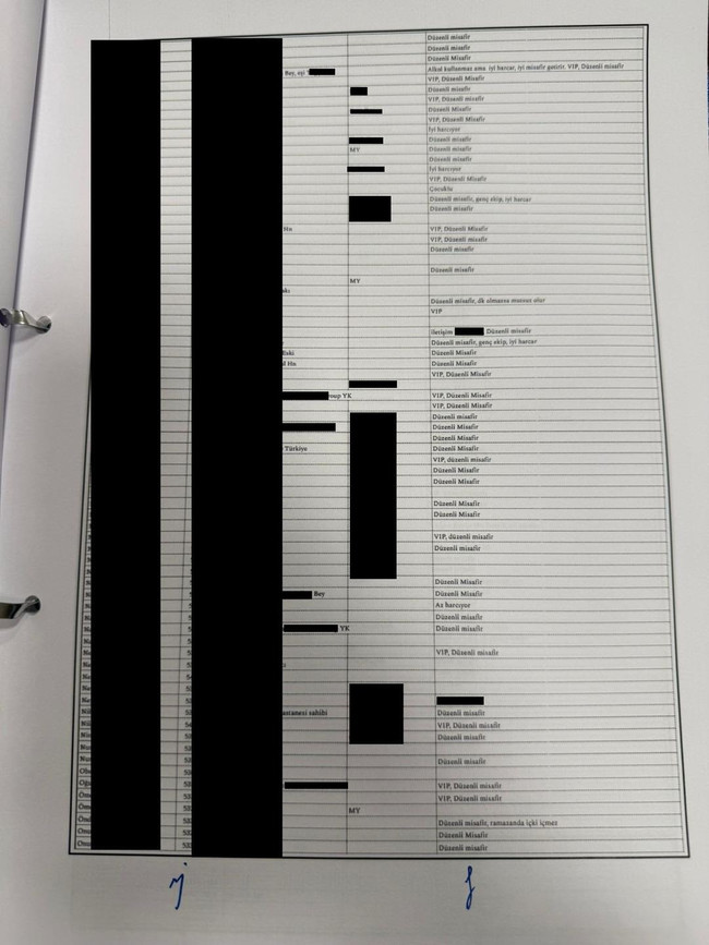 Gazeteci Burak Doğan'ın haberine göre Bebek Otel sahibi Muzaffer Yıldırım’ın telefon dijitallerindeki incelemelerde otele gelen müşterilerin fişlendiği ortaya çıkarken müşterileri kategorilendiren Yıldırım müşterilerin isimlerini ve referanslarını, sıfatlarını ve özelliklerini tek tek fişlettiği belirlendi.