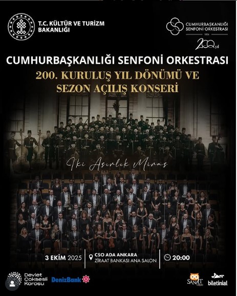 DenizBank ana sponsorluğunda, 3 Ekim 2025 Cuma günü saat 20.00’de CSO Ada Ankara Ziraat Bankası Ana Salonu’nda gerçekleştirilecek bu özel konserde Şef Cem’i Can Deliorman yönetimindeki Cumhurbaşkanlığı Senfoni Orkestrası 200. Yıl Özel Programı ile sahne alarak iki asırlık sanatsal yolculuğunu simgeleyen seçkin eserleri seslendirecek. Konser programında yer alacak eserler, hem Türk hem de dünya müzik tarihinin önemli dönüm noktalarına ışık tutarak, CSO’nun köklü mirasını ve çağdaş vizyonunu bir araya getirecek.UNUTULMAZ BİR MÜZİK ŞÖLENİ