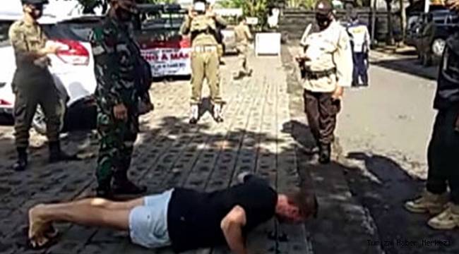 Turistler maske takmamanın cezası olarak 15 şınav çekmenin yanı sıra 100 bin Endonezya rupisi (yaklaşık 6 Euro) tutarında para cezasına da çarptırılıyor.