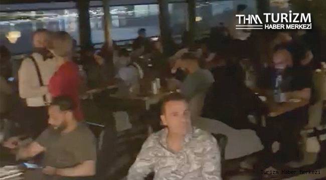 Polis ekipleri otelin teras katında çok sayıda kişinin maske bile takmadan iç içe, yüksek sesli müzikler eşliğinde masalarda oturduğunu gördü.