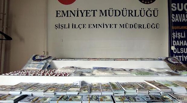 Otele yapılan operasyonda 2 bin 56 adet uyuşturucu hap, 1 kilo uyuşturucu madde, hassas terazi ve 190 deste halinde yaklaşık 16.5 milyon lira tutarında sahte döviz ele geçirildi.