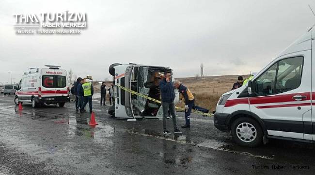 Kayseri kara yolu üzerinde seyir halindeki tur otobüsü, buzlanma nedeniyle kaza yaptı.