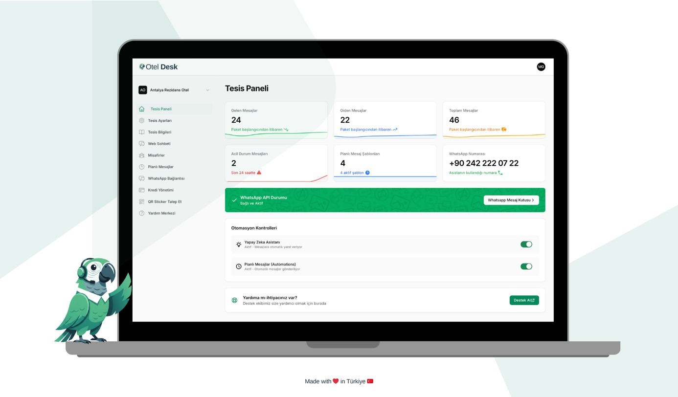 Türkiye otelcilik sektörünün en büyük sorunlarından biri olan resepsiyon personelinin rutin iş yükü ve yabancı misafirlerle yaşanan dil bariyeri, sektörün içinden gelen bir isim tarafından kökten çözülüyor. Hem deneyimli bir Otel Müdürü hem de Web/Mobil Geliştirici olan Erkan Arancı’nın geliştirdiği Otel Desk Akıllı Otel Asistanı, WhatsApp üzerinden 7/24 hizmet vererek otellerde personel yükünü %80 oranında azaltmayı ve otel içi satışları artırmayı hedefliyor.